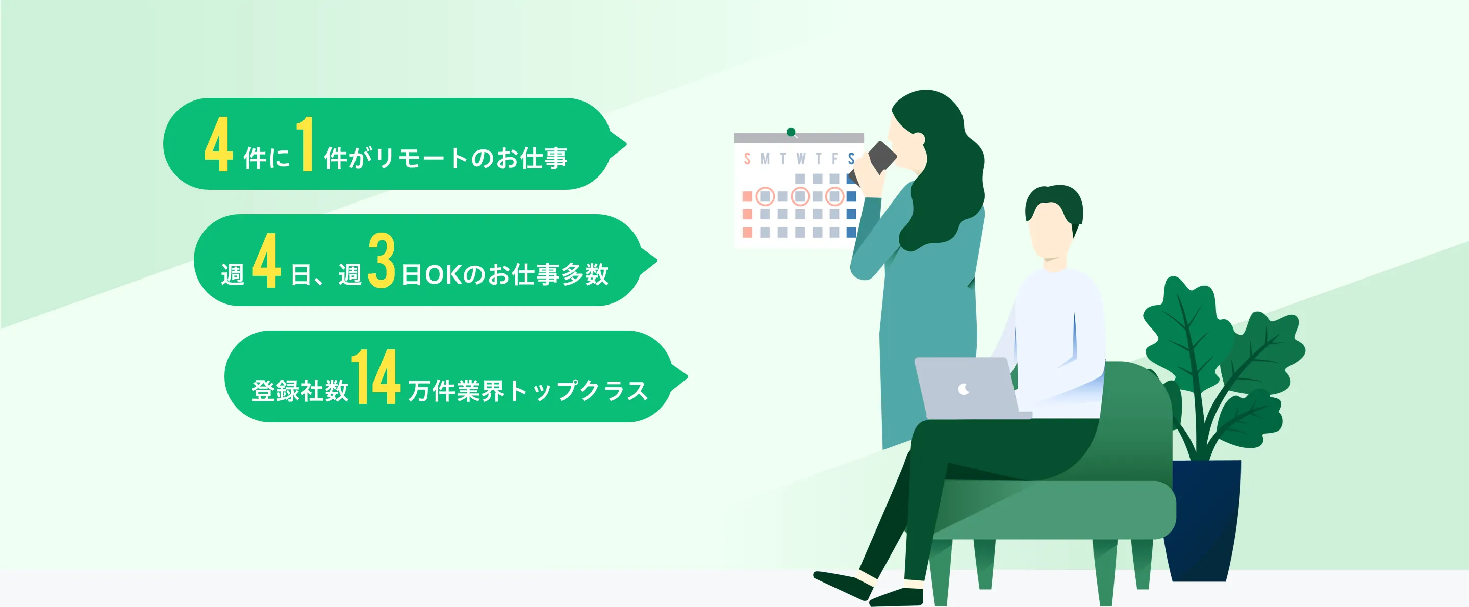 働き方にマッチしたお仕事がそろっています。